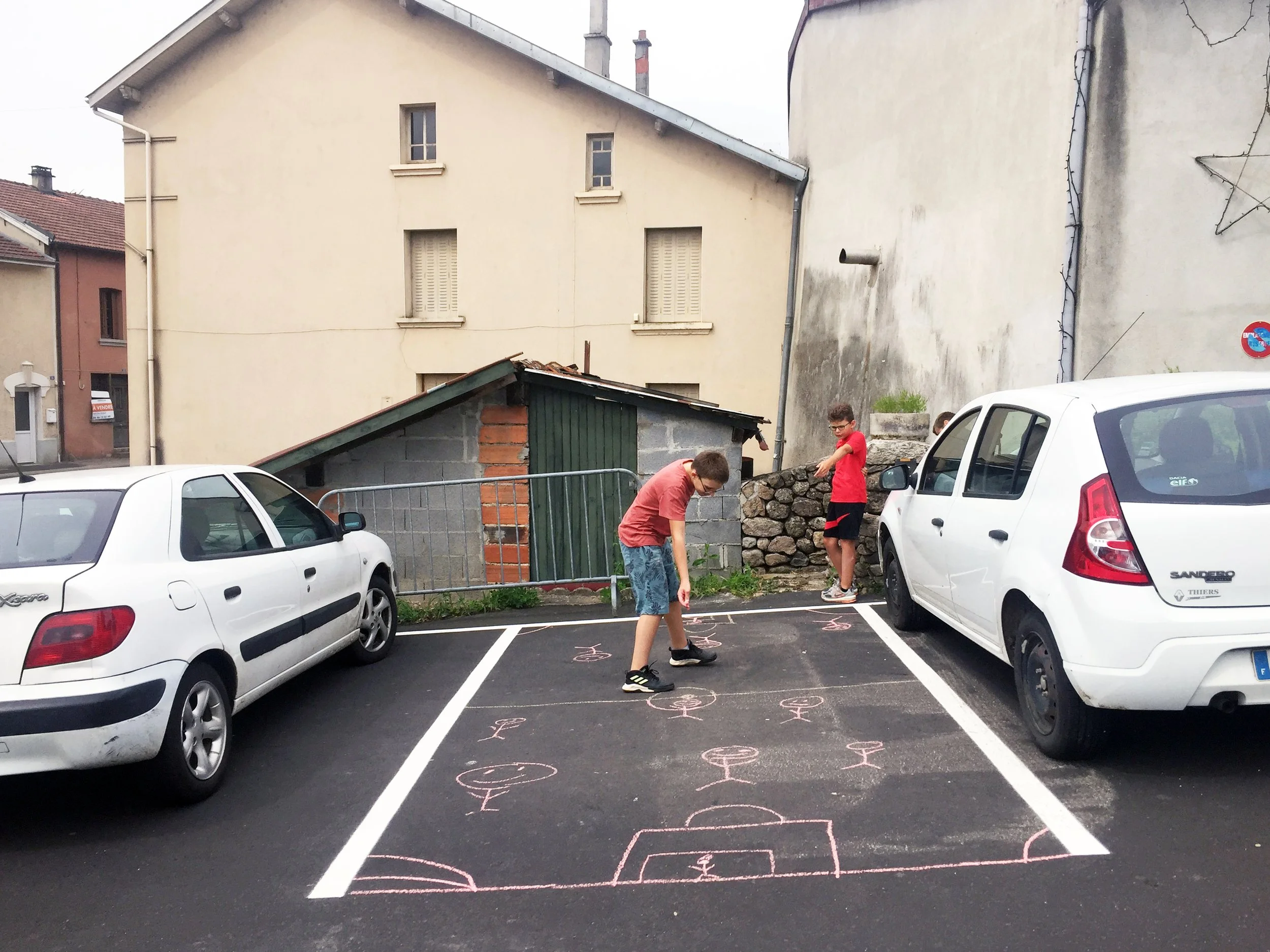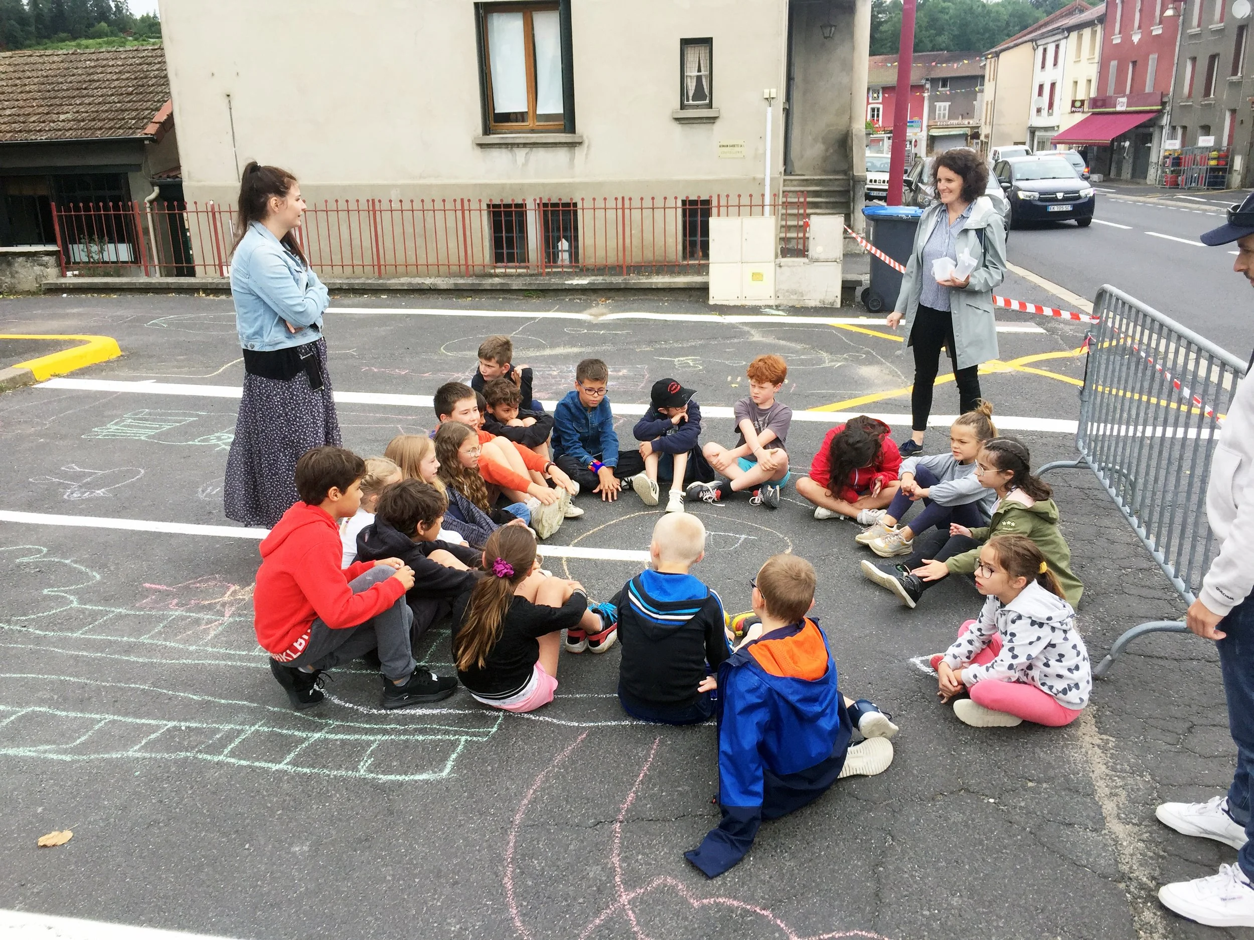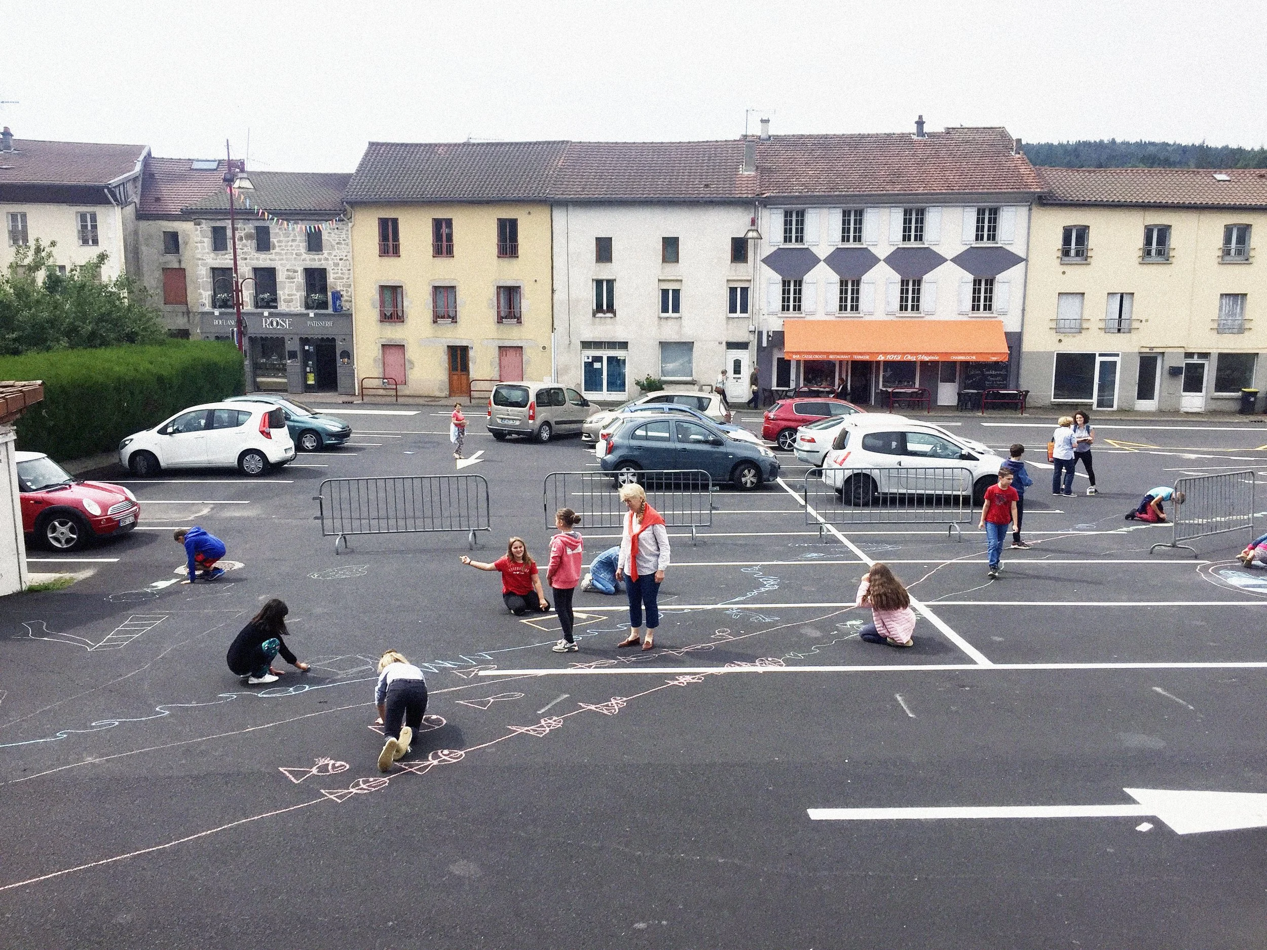 Après plusieurs temps d’arpentage avec les élus, ou à vélo avec les adolescents ; nous avons mené des ateliers In Situ sur l’espace public avec les scolaires, très imaginatifs et moins attachés à l’automobile que leurs aînés.