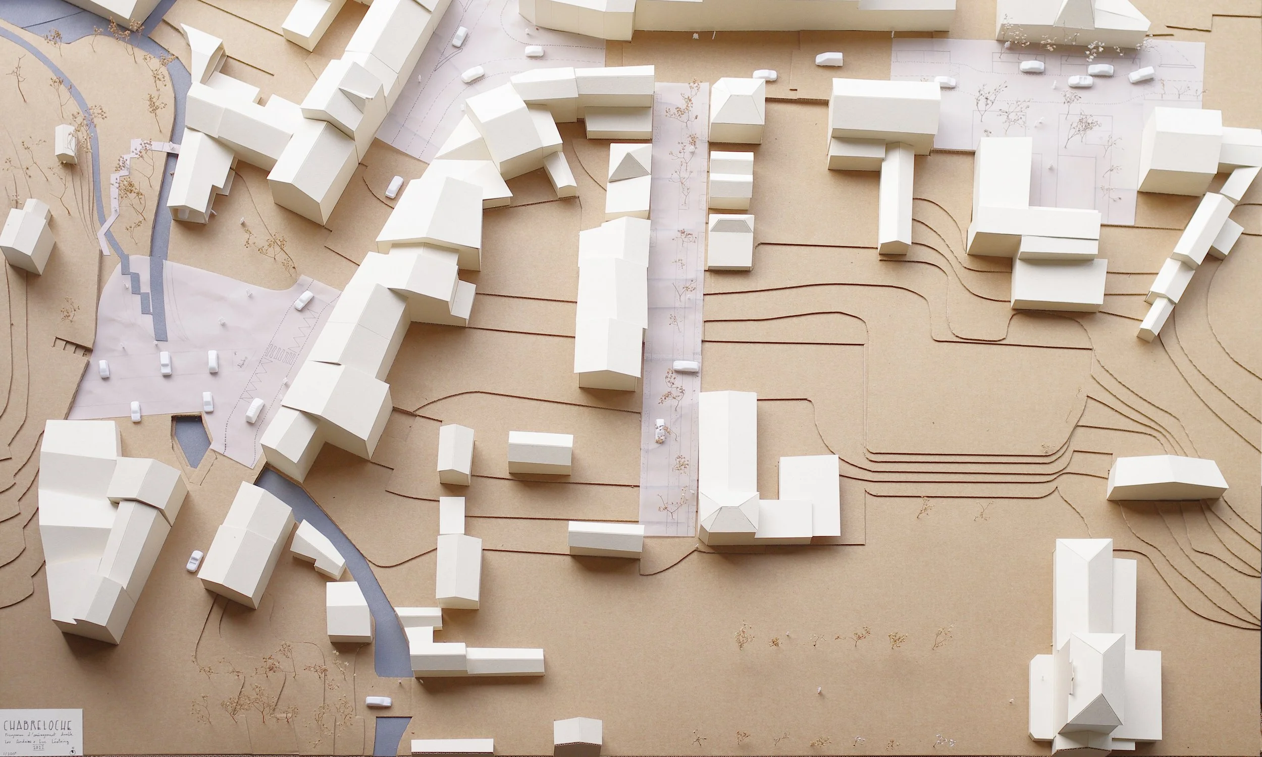 Nous avons réalisé une grande maquette de la traverse du bourg (échelle 1/200e) pour rendre intelligible à toutes et tous les choix esquissés.